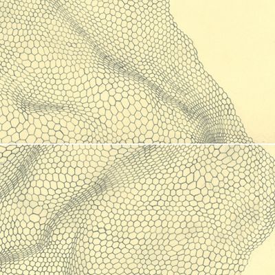 Mischtechnik // Nähmaschinenzeichnung, Aryl, Tusche, Tinte, Tüll auf Packpapier