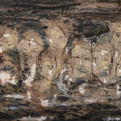 Mischtechnik, Acryl, Fineliner, Gouache auf Leinwand