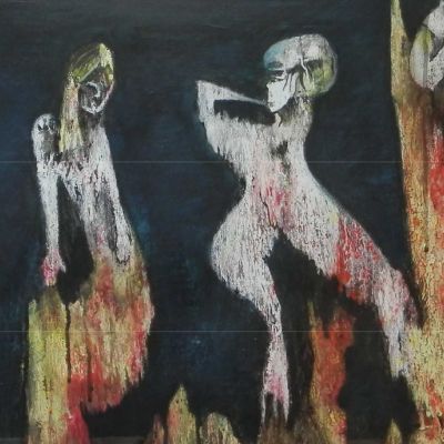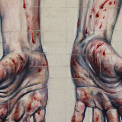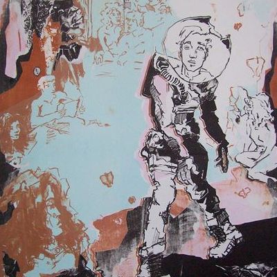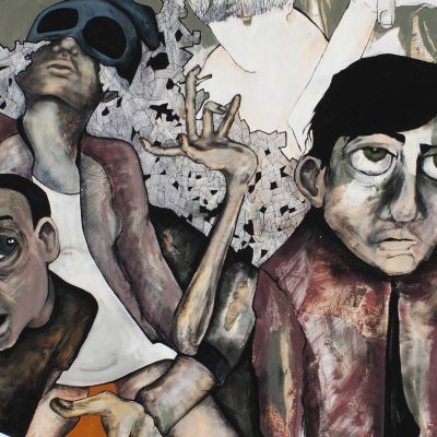 Acryl, Spray, Kohle, Tinte auf Leinwand