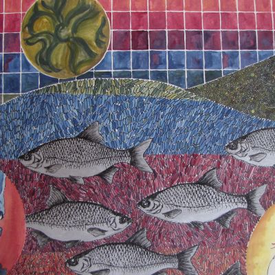 Tuschetechnik und Wasserfarben auf Zeichenpapier