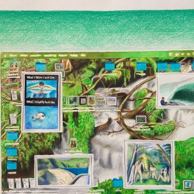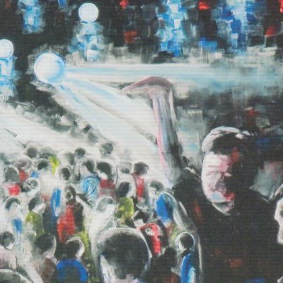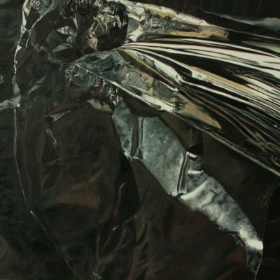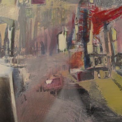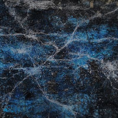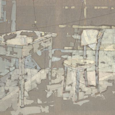 Öl, Faden, Pastellfarbe auf Leinwand.