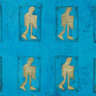 Mischtechnik. Nähmaschinenzeichnung, Acryl, Druckfarbe, Tinte auf Echizen Washipapier